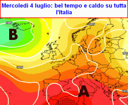 Tra il prossimo week-end e la giornata di mercoledi 4 luglio (prima mappa) avremo il massimo sviluppo dell’onda calda sull’Italia.