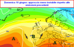 Il braccio di ferro tra le depressioni atlantiche e l'anticiclone di matrice subtropicale sembra far prevalere maggiormente la seconda figura durante la prima metà del mese di giugno rispetto alle ultime emissioni.