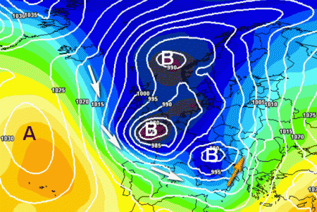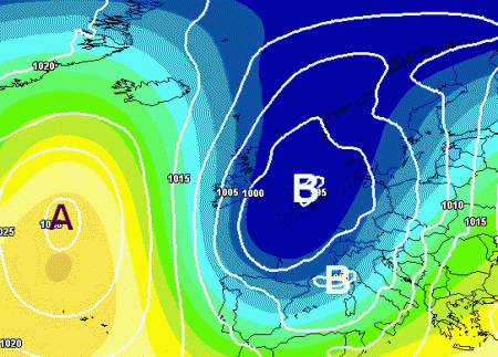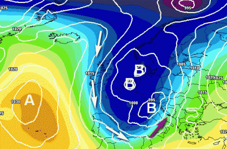 Un ramo del vortice polare diretto verso la Francia originerà una risposta perturbata sulla nostra Penisola, di cui non si riesce a cogliere ancora del tutto la caratteristica: invernale con neve a bassa quota o autunnale con prevalenza di pioggia.