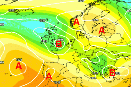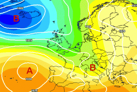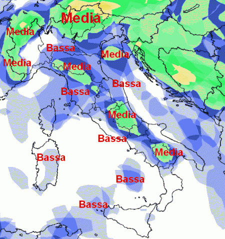 Come si nota dalla mappa, la nostra Penisola non sarà interessata da perturbazioni o forti depressioni; tuttavia le figure stabilizzanti resteranno ai margini della scena italica che conserverà quindi un tempo ancora un po’ instabile specie nelle aree interne e durante il pomeriggio.