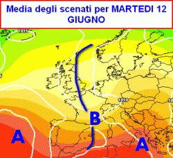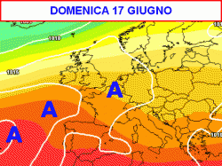 La terza mappa valida per domenica 17 giugno mostra finalmente la forzata dell’alta atlantica verso levante con spostamento dell’instabilità verso levante.