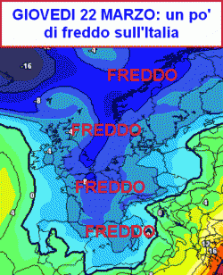 La mappa termica prevista per giovedì 22 marzo deve essere presa come puramente indicativa sui movimenti delle masse d’aria che si avranno sul finire del mese.
