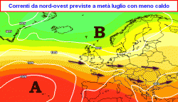 Dal fine settimana 7-8 luglio in poi, ciò che emerge è un quadro barico votato all’instabilità atmosferica almeno sul settentrione e alla persistenza di un caldo solo moderato al centro e al sud, interrotto anche lì di tanto in tanto dall’inserimento delle correnti da nord-ovest.
