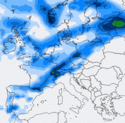 Qui la traccia delle precipitazioni sull’Europa previste proprio per la notte tra il 7 e l’8 aprile: transiterà questo fronte anche sull’Italia?