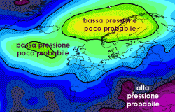 La scala di colori lo evidenzia: in viola si notano le aree dove la previsione (in questo caso di alta pressione) appare più probabile, in giallo o verde le aree dove appare meno probabile (in questo caso una zona di bassa pressione)