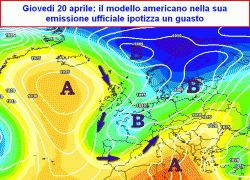 Il tentativo, molto rocambolesco, di spingere nel Mediterraneo una saccatura carica di piovose perturbazioni per l’ultima decade di aprile, è andato in scena anche oggi sulle mappe del modello americano.