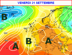 RIASSUMENDO: venerdì 21 e sabato 22 settembre bel tempo a parte nubi sui monti nel pomeriggio associate a qualche temporale, ancora un po’ caldo. Domenica 23 peggiora al nord con piogge in estensione alla Toscana, per il resto tempo ancora buono o con nubi di poco conto; temperature in calo al nord, stazionarie altrove. Tra lunedi 24 e mercoledi 26 settembre tempo instabile o perturbato al nord e su parte del centro con piogge e temporali, più sole al meridione. Giovedì 27 settembre probabile estensione del maltempo anche al meridione.