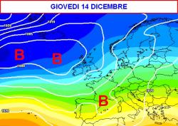Attorno alla fine del mese, la media degli scenari del modello americano prevista per giovedì 14 dicembre ci suggerisce una prosecuzione del tempo instabile o perturbato specie al nord e al centro.