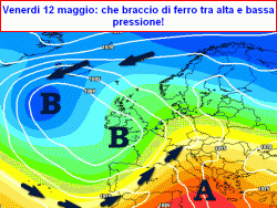L’ondata di caldo prevista al sud, sulle isole e in parte anche sulle regioni centrali da giovedì 11 maggio non dovrebbe persistere oltre sabato 13 o domenica 14, quando si esaurirà il braccio di ferro tra l’anticiclone africano e la depressione atlantica che si andrà a collocare sull’ovest del Continente.