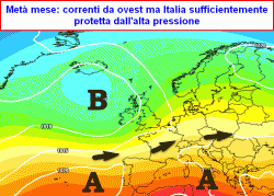 La rotazione delle correnti ad ovest porterà per metà mese una pausa di tempo tranquillo anche al nord, sia pure ancora leggermente variabile ed avrà anche il merito di allontanare la massa d’aria calda di origine africana dalla Sardegna, dal centro e in parte anche dalle regioni meridionali, dove comunque permarranno valori superiori alla
