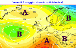 Infatti l’ipotesi di una spettacolare risalita verso nord dell’anticiclone subtropicale, pur rilanciata ancora parzialmente dal modello americano tra venerdì 5 e lunedì 8 maggio, sta perdendo
