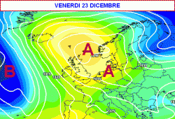 Infine, volendoci spingere tra le maglie del Fantameteo più puro, sembra possibile l’isolamento della struttura altopressoria in sede scandinava nella giornata di venerdì 23 dicembre (terza mappa).