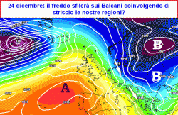Una saccatura di origine artica tenderà a proporsi per la Vigilia di Natale sui Balcani, sfiorando le nostre regioni adriatiche, dove è attesa una netta flessione delle temperature e anche qualche rovescio di neve tra Molise e Puglia.