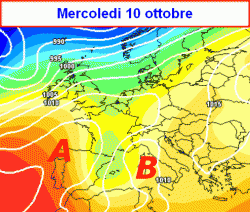 Mercoledi 10 ottobre, infine, la formazione di una depressione sul Mediterraneo potrebbe rallentare lo spostamento verso levante del fronte facendo persistere il maltempo sull’Italia ancora per qualche giorno.