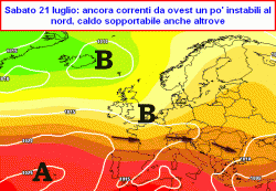 Questa corrente da ovest leggermente ondulata persisterebbe peraltro poi anche nei giorni successivi, almeno sino al 21-22 luglio, riproponendo a tratti condizioni di moderata instabilità al settentrione e limando le velleità delle masse d’aria calde di origine africana di impossessarsi del nostro Paese.