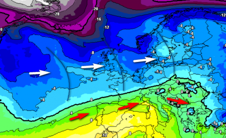 Il tempo sull’Europa sarà presto caratterizzato dall’intervento di correnti occidentali molto tese, figlie di un vortice polare compatto, che allontana verso est tutte le velleità invernali e consegna al Mediterraneo dapprima un respiro mite di derivazione ispanica, poi una sfilata delle code di diverse perturbazioni in transito sul centro Europa con risvolti modesti per il nostro Paese.