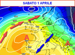 Per avere il ripristino di condizioni anticicloniche e miti si dovrà attendere (secondo le elaborazioni del pomeriggio) la prima settimana di aprile.