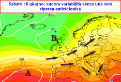 sabato 10 e domenica 11 giugno: ancora tempo un po’ variabile sull’insieme del Paese con qualche rovescio o spunto temporalesco pomeridiano in montagna e sulle zone interne, clima sempre abbastanza gradevole.