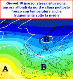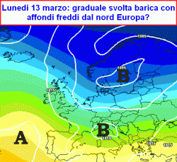 Parziale fase anticiclonica dall'8 al 12 marzo, poi perdono punti gli affondi da ovest, ne guadagnano quelli da nord, con affondi diretti nel cuore del Mediterraneo.