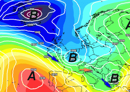 In un simile contesto aspettiamoci altre precipitazioni con nevicate sia sulle Alpi che sugli Appennini, difficilmente però a quote di pianura, almeno in questa prima fase. Da notare l’azione a tenaglia dei due anticicloni che costringono le depressioni a tuffarsi nel Mediterraneo senza se e senza ma.