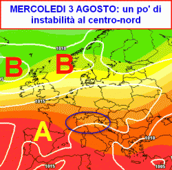 Nei primi giorni di agosto (indicativamente tra lunedi 1 e mercoledì 3 agosto) si manifesterà un lieve cedimento dell’alta pressione che coinvolgerà essenzialmente le regioni settentrionali (e forse le aree interne del centro).
