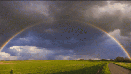 L’arcobaleno dopo un temporale ha un doppio significato; nel momento in cui lo si fotografa, il temporale è passato e si attende un miglioramento della situazione con il ritorno del sole.
