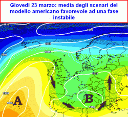 da giovedì 23 a domenica 26 marzo: tempo piuttosto instabile anche con momenti favorevoli a precipitazioni, temperature in diminuzione ma forse ancora leggermente superiori alla media del periodo.