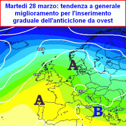 da lunedì 27 a martedì 28 marzo: residue condizioni di instabilità al centro e al sud, specie sul versante adriatico e sul basso Tirreno, migliora al nord, ventilato, fresco.
