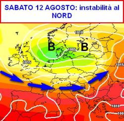 Lunedi 14 agosto (seconda mappa), una nuova perturbazione si appresterà a lambire le regioni settentrionali, dove apporterà un nuovo carico di instabilità.