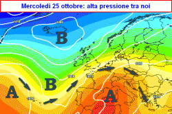 Da martedì 24 a domenica 29 ottobre: possibile nuova rimonta dell’alta pressione. Situazione favorevole non solo all’accumulo di inquinanti nelle grandi aree urbane ma alla formazione di nebbia o strati bassi sulle zone pianeggianti e costiere. Temperature superiori alla media, specie in montagna e nelle zone libere da nubi o nebbie. Passaggi nuvolosi medio alti a tratti nelle Alpi, senza conseguenze.