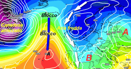 Anticiclone di blocco in Atlantico ed iniezione di correnti molto fredde verso il Mediterraneo e l’Italia con episodi nevosi anche in pianura ad iniziare dal nord.