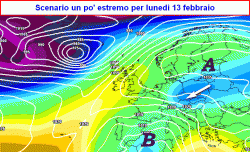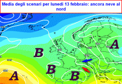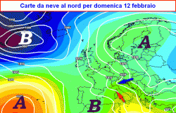 da domenica 12 febbraio, a tratti anche in pianura, per l’interazione tra aria fredda di origine polare continentale e la risalita di aria mite dal Mediterraneo.