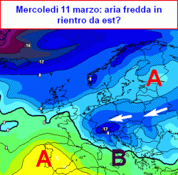 da sabato 14 marzo a martedì 17 marzo: ancora possibili retrogressioni fredde da est con interazioni con saccature atlantiche non escluse.
