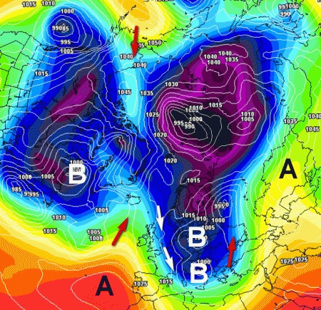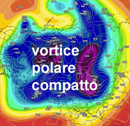 Naturalmente questa disposizione delle figure bariche sottende un vortice polare sufficientemente disturbato da consentire l’affondo verso sud di queste lingue perturbate dalle zone artiche verso sud, ma non cosi tanto da ripetere, almeno per il momento ciò che è successo durante le feste di Natale.