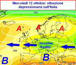 Sul Mediterraneo avremo la classica depressione da contrasto che seguiterà a bagnare con rovesci e temporali molte regioni del centro e il meridione.