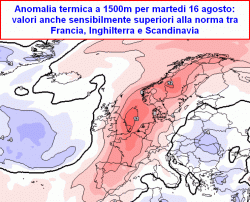 Infatti tra Francia, Inghilterra, Norvegia e Svezia, dovrebbero registrarsi le anomalie termiche più importanti nel periodo compreso tra il giorno di Ferragosto e giovedì 18 agosto.