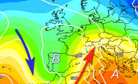 Lo sviluppo di un vortice ciclonico sull'Europa occidentale richiamerà verso il Mediterraneo venti caldi nordafricani. Ne verranno investite le regioni meridionali, mentre al nord si fa strada l'ipotesi di un nuovo passaggio piovoso.