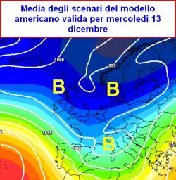 La prima mappa mostra la media di tutti gli scenari imbastita questo pomeriggio dal modello americano per mercoledi 13 dicembre.