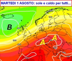 Nuova rimonta dell'alta pressione nei primi giorni di agosto, seguita però da un passaggio instabile al nord nel primo week-end del nuovo mese.