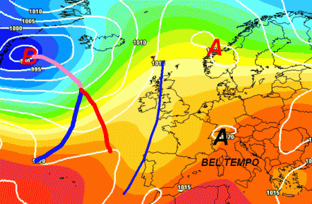 Oltre al bel tempo che sarà presente sul Bel Paese, specie al centro e al meridione, non possiamo fare a meno di notare la baraonda atlantica che lentamente busserà alle porte dell’Italia con una serie di perturbazioni.