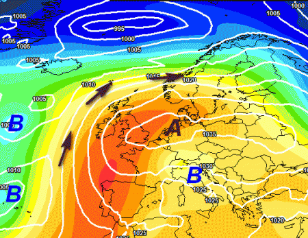 Ecco, ad esempio la versione che ne offre il modello europeo: una proboscide anticiclonica intorno a giovedì 12 si erge verso il nord Europa e porge il fianco a rientri di aria più fredda da est, che cominciano a generare condizioni di instabilità sull’insieme del Paese, come si vede nella mappa qui sotto: