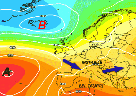 L'alta pressione delle Azzorre porrà i massimi troppo ad ovest per riuscire a determinare la stabilità sul nostro Paese.