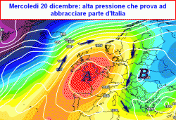 Da giovedì 21 a domenica 24 dicembre: possibile ulteriore espansione dell’anticiclone sull’Italia con tempo buono, residua circolazione instabile e fredda solo sul basso Adriatico, inversione termica e clima mite in alta quota sulle Alpi e sulle coste, freddo umido sulle pianure.