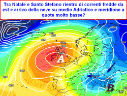 Natale e Santo Stefano: rientro freddo da nord-est con maltempo anche di tipo nevoso su medio Adriatico ed Appennino meridionale, vento e temperature in calo ovunque. (Da confermare). Anticiclone sbilanciato verso nord est.