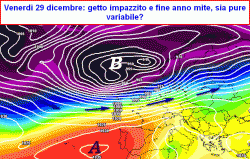 Cosa ne deriverebbe? Il passaggio di perturbazioni atlantiche con annesse precipitazioni su mezza Italia entro il 30-31 dicembre, segnatamente nord e centro, con neve però solo sui rilievi alpini e piogge altrove, dunque in un contesto almeno inizialmente mite.