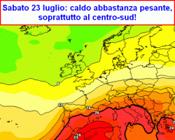 anche su valori over 35°C, appena al di sotto al nord, dove qualche infiltrazione di aria meno calda da ovest, potrebbe di tanto in tanto rimescolare l’aria, concedendo anche qualche momento temporalesco ai rilievi, più difficilmente in pianura.