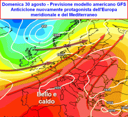 Anticiclone che in questo frangente non avrebbe più origini africane ma sarebbe prodotto finale dell’espansione altopressoria azzorriana sul Vecchio Continente. Così come viene messo in evidenza dal centro di calcolo americano, il nuovo colosso di bel tempo e stabilità sarebbe caratterizzato da valori di pressione e geopotenziale piuttosto elevati, a tal punto da portare una nuova ripresa della circolazione estiva ormai nella famigerata "zona Cesarini" della stagione, quando al contrario dovrebbero essere le masse d’aria più fresche provenienti dalle latitudini settentrionali ad imporre la propria voce sul nostro territorio.