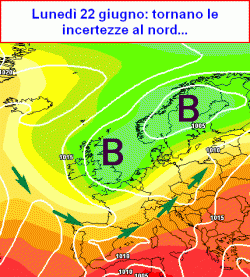 lunedì 29 giugno: dapprima bello, poi impulso temporalesco in arrivo al nord-ovest con temporali anche intensi prima di sera, specie sul Piemonte. Temperature in calo sul nord-ovest, senza grandi variazioni altrove.