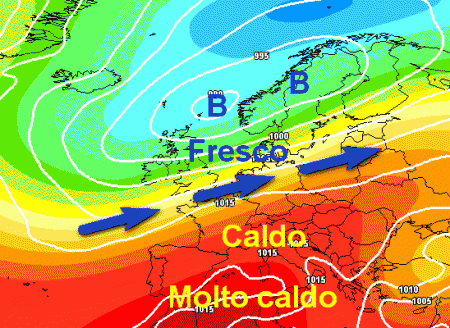 Si nota la vasta depressione sopra citata che metterà a sedere l’estate sull’Europa centrale e settentrionale. Sulla Scandinavia potrebbe fare addirittura freddo.