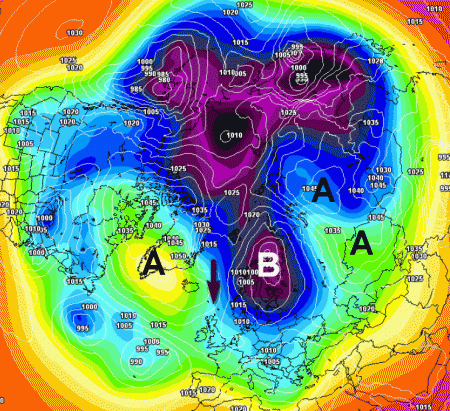 Al posto del grande ciclone d'Islanda c'è un anticiclone sulla Groenlandia, capite bene che qualcosa non quadra.
